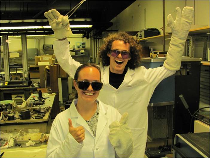 Two REU Participants taking a break from making glass at Lehigh University